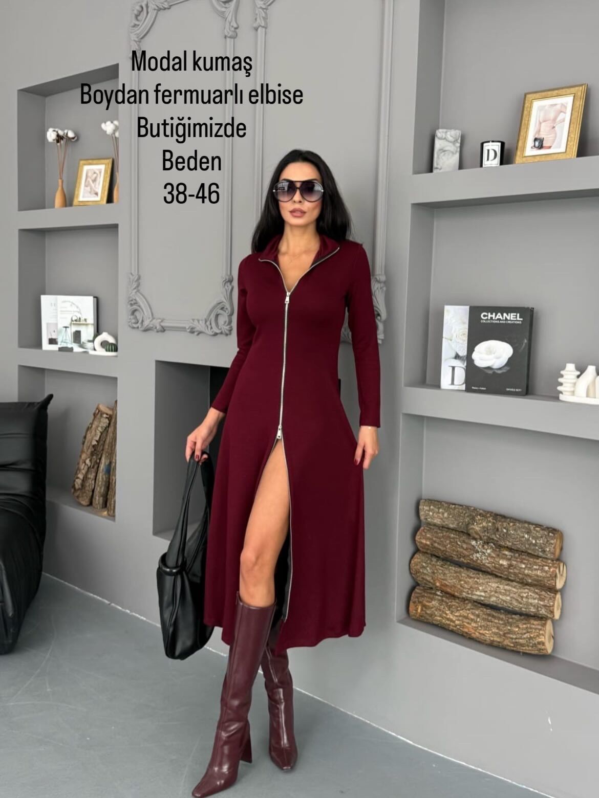 Modal Boydan fermuarlı elbise